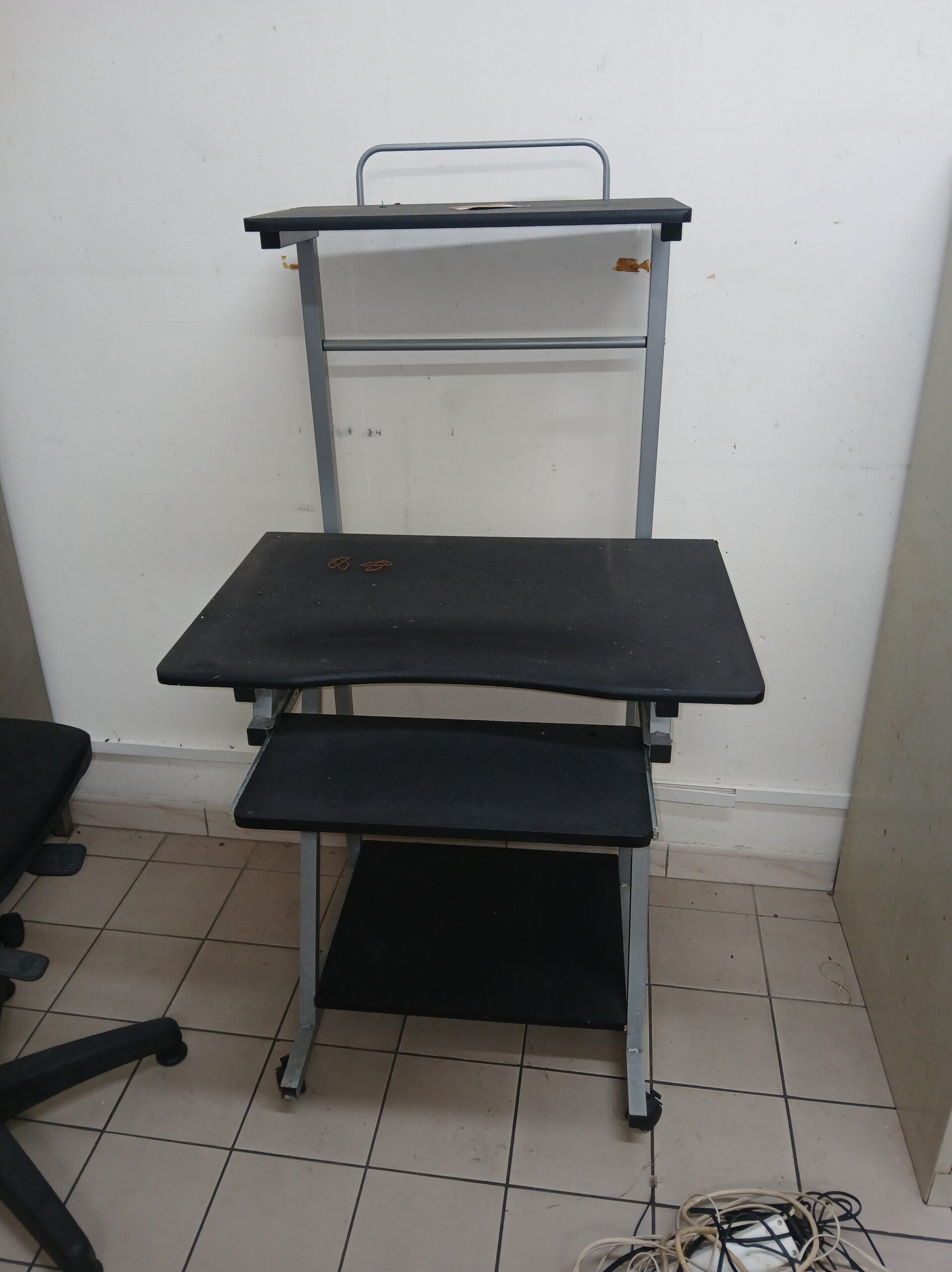 bureau et porte appareils. A roulettes. Sale mais fonctionnelle