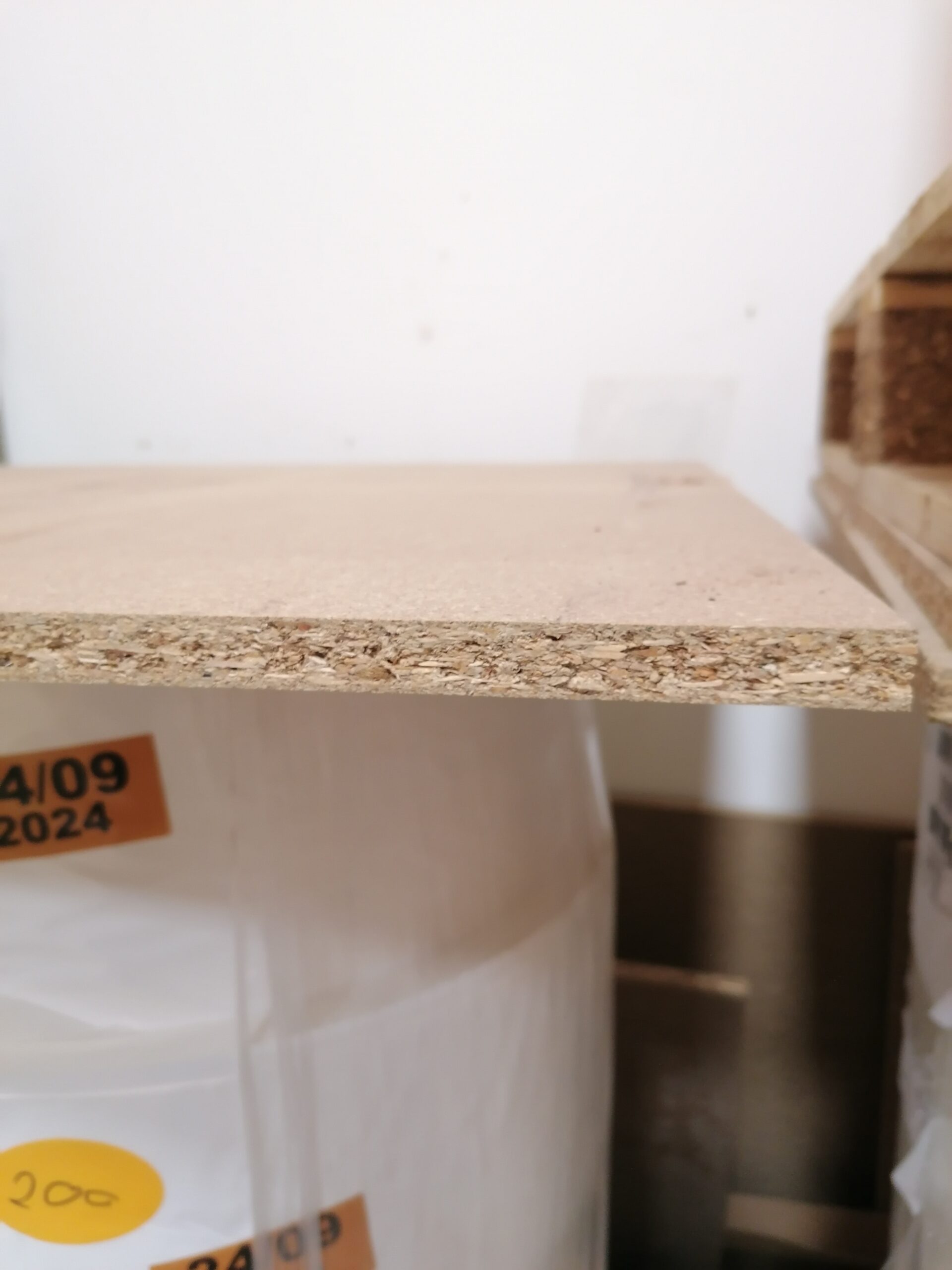Planches d'aggloméré utilisées comme couvercle de protection de palettes en conteneur stockées à l'abri de…