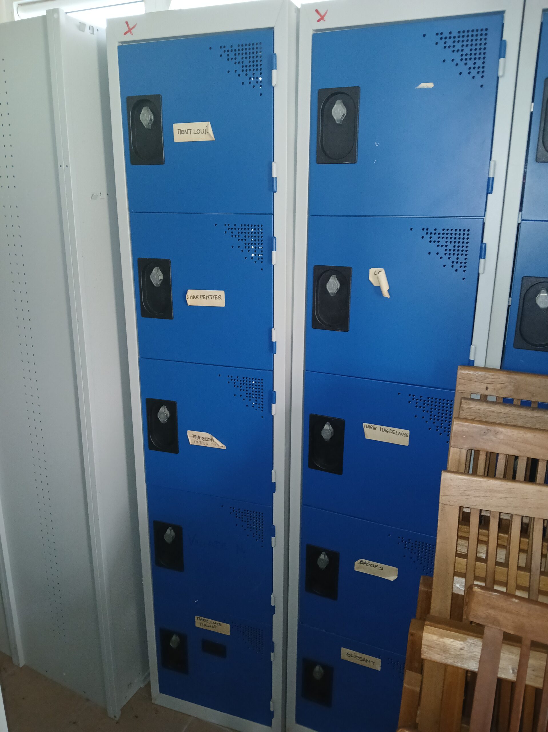 Meuble bleu, 5 cases. Serrure fonctionnelle.