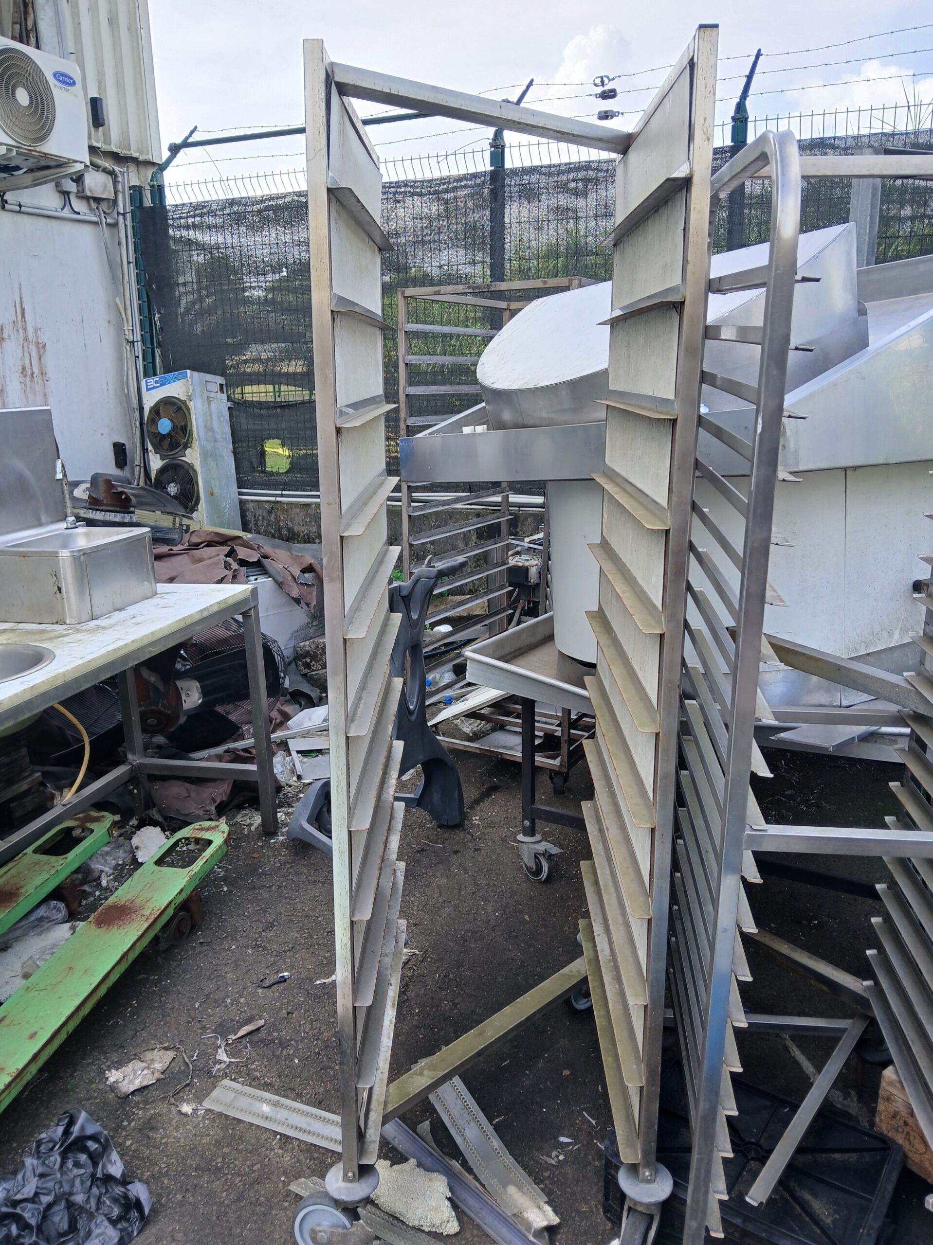 2 éviers inox, un simple et un double déposés soigneusement d'un chantier