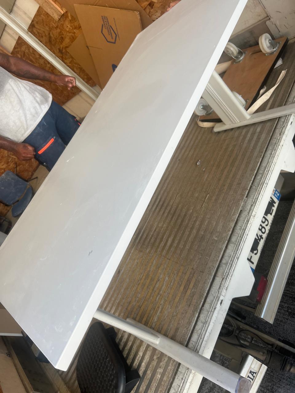 Structure noire et planches métalliques beiges. Mauvais état. Disponible autour de la mi janvier