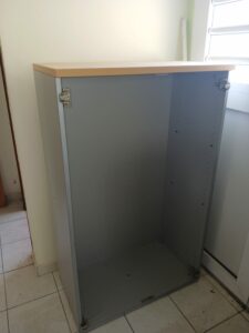 Armoire grise métallique sans porte 130cm de haut x 80cm de large + armoire en bois sans porte 240longx45large cm