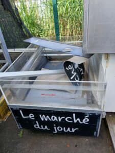Ancien bac de froid, ne fonctionne plus. Paroies vitrées. Etat moyen.