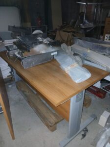 Différents modèles : - couleur bois. Avec retour. 160x120x73cm x2 - couleur bois. simple.120x80x73cm x3 - couleur bois. 80x80x73 cm x1 -gris et blanc 140x80x72cm x4 Bon état