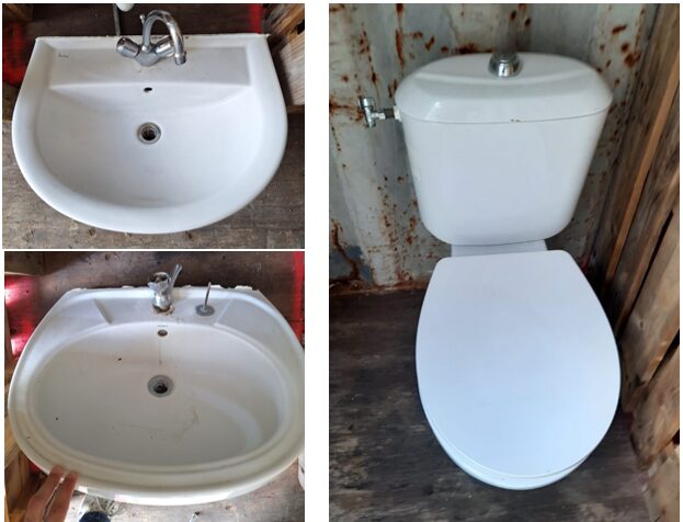 2 éviers inox, un simple et un double déposés soigneusement d'un chantier