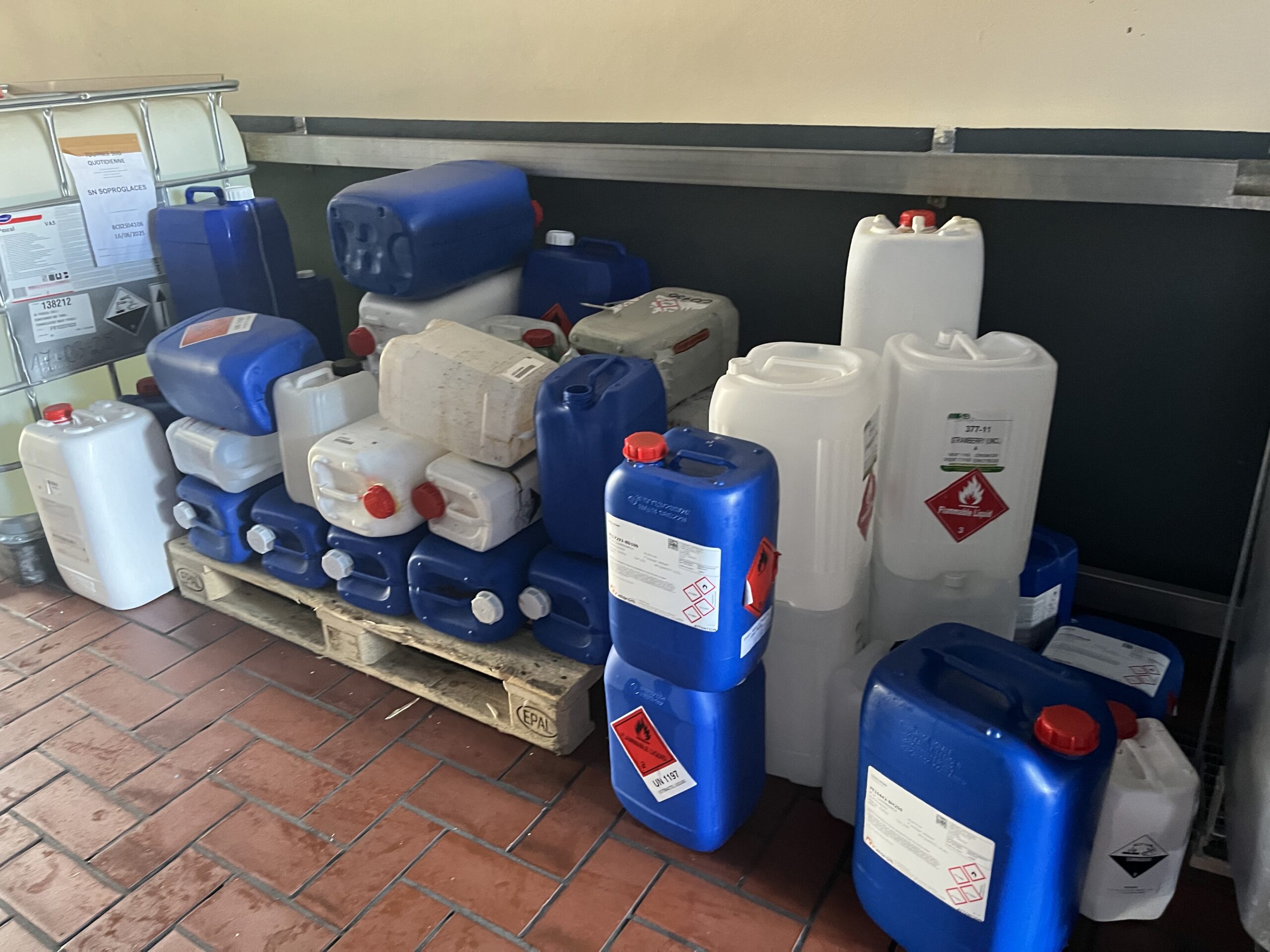 Bidons de produits de nettoyage ou de produits alimentaires, vides